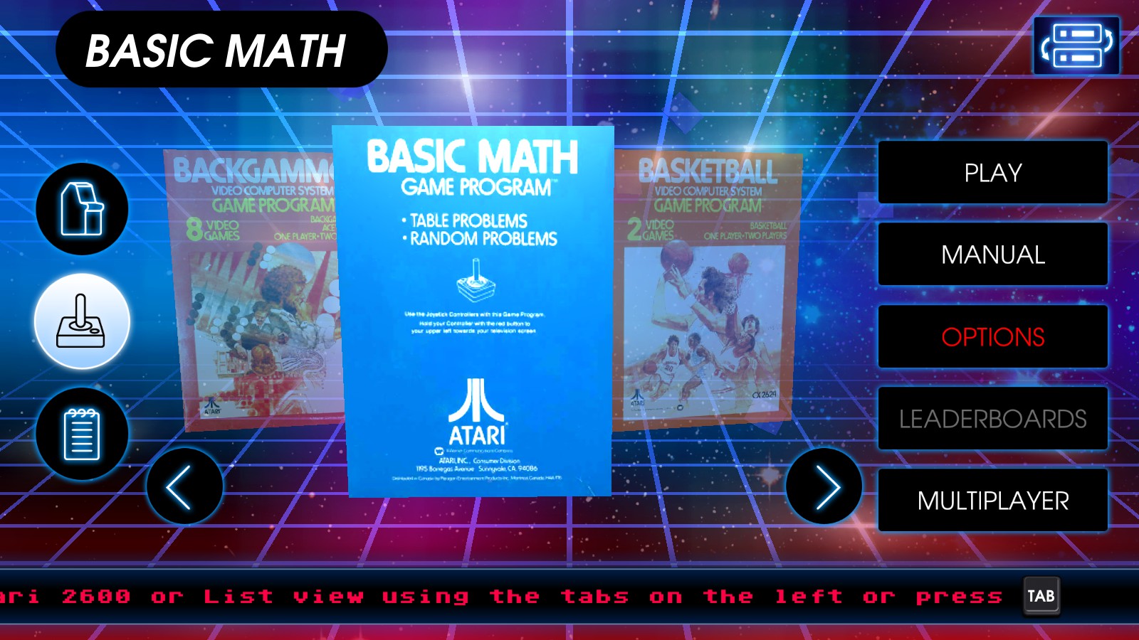 However, the interface for Basic Math was intriguing. The 3D box spun in-place pleasingly. The interface and visuals developer Code Mystics created for Atari Vault are very well-done. I felt them tugging me gently back to a specific time and place in my childhood, which I suppose is the goal in a nostalgia product like Atari Vault. They made me want to “open” the box and see what was inside.