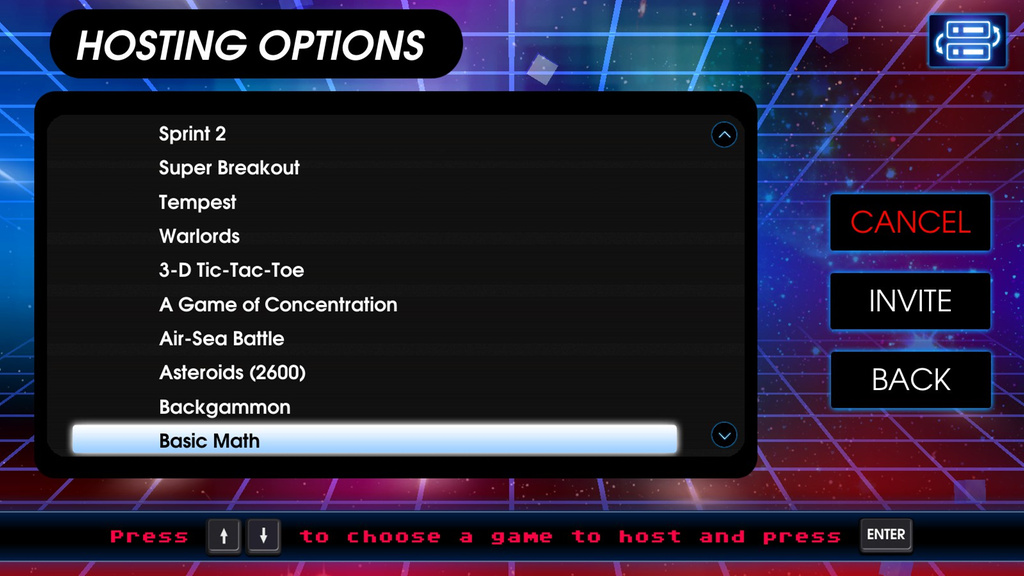 It dawned on me that the previous screen was the lobby for EVERY multi-player game, not just Basic Math. And there were none listed, which meant no none was trying play anything in Atari Vault.