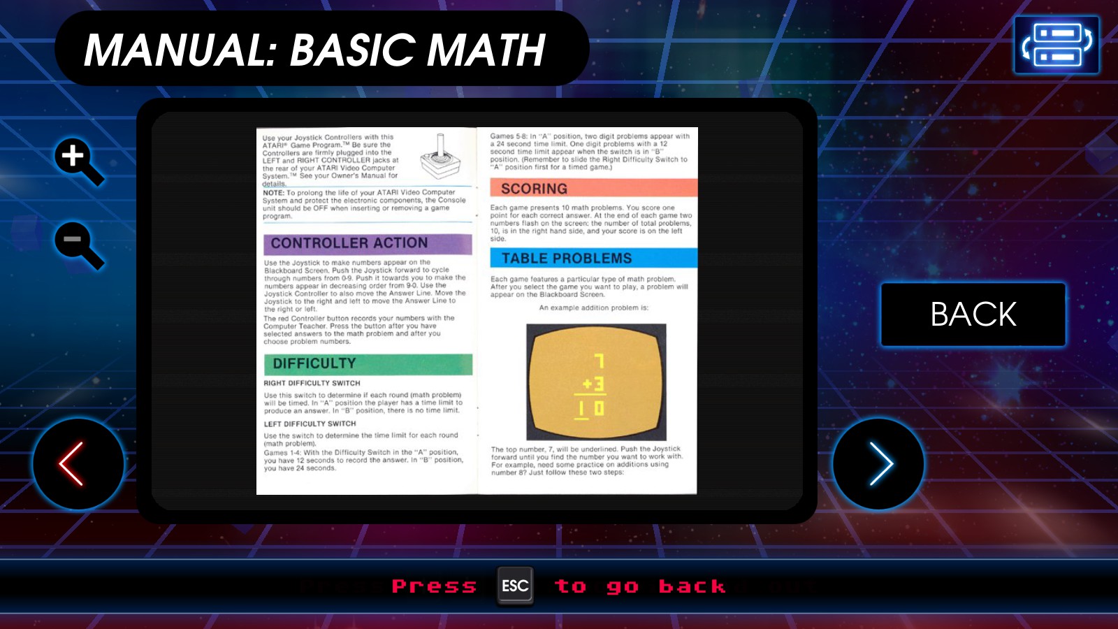 //platform.twitter.com/widgets.jsBut then why would Atari and Code Mystics offer it up as multi-player game? Why would a game even start in multi-player mode? It was obviously an oversight on their part. While trying to offer as much content in the package as possible, they inadvertently put a game in the multiplayer section that was not multi-player. Something else struck me as I read through the pages of the Basic Math instructions and looking at the box: how much I loved those old Atari game packages. The box art, the weight and feeling of cartridge inside the box, the pages of the booklet that could unfold the mysteries of the game I was holding in my hands. With past Atari game collections, I never really paid any mind to the boxes and instructions in their digital form. They were low-res, and/or snatched directly from the images on AtariAge.com However, in Atari Vault they are lovingly recreated and/or digitized as new and gorgeous assets. Furthermore, I actually had to use them in my quest to find out what went wrong with Basic Math, which made them even more important. I felt warm feeling rush over me. This was the true nostalgia I was looking for. I blanket of old thoughts and feeling to to hide inside of. I may have wanted to “master” the games, but the virtual materials that came with the game gave me the full experience of nuance and nostalgia I didn’t know I was looking for. I finished the night with a few more tweets and few more games. I came up with a couple ideas for Atari Vault in the future, and tried to wind down after a complex day of feelings and emotions all centered on Atari VCS games.