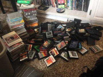 The “pile of stuff” in the photo to the left is a collection of 36 years worth of “absent-minded” Atari 2600/7800 collecting. I say “Absent Minded” as I was never really serious about collecting games. My feelings for the VCS/2600 and 7800 were what I would call “uncomfortable nostalgia”. I loved my Atari video games in their halcyon days, but after I discovered computers, and after the original Bushnell founded Atari Inc. morphed into the Frankenstein’s monster of the Tramiel led Atari Corp., I was less thrilled by the thought of Atari. As pointless as this may seem, I became more of an “activist” for the memory of the first great video game company than just a fan of the games.