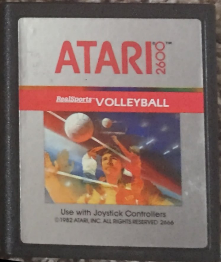 Football (M-Network Korea),AstroBlast (M-Network),Armour Ambush (M-Network) *2, Chopper Command (blue cart),Adventure *2 ,Video Pinball,Space War,Breakout (yellow text label),Donkey Kong,Berzerk *2 (one gross one okay),Super Challenge Baseball (M-Network),Space Jockey (vid-tec, us games),Football Realsports Soccer (1988),Space Attack (M-Network),Demon Attack (one silver one blue),Encoungter At L-5,Video Olympics,Asteroids (Tele games),E.T.,Ms. PacMan,Atlantis,Trick Shot,Outlaw (no top label),International Soccer (M-Network),Grand Prix (blue),Haunted House,Moon Patrol,Star Castle,Space Cavern (no top label),Warlords (tele games),Ice Hockey (gross),Space Invaders (1980),Kangaroo (1987),California Games,Raiders Of The Lost Ark,Combat (01),Realsports Vollyball x 2 (1982 and 1987),Megamania (gross),Cosmic Ark,River Raid (Blue),Super Breakout,Bugs,SSsnake,Vanguard (1987),Boxing (Acitivsion blue),Riddle Of The Sphinx,Night Driver,Fire Fighter,Empire Strikes Back,Realsports Tennis (1988),Yars Revenge,Midnight Magic (red)