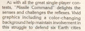The Winter 1981 issue of Electronic Games said  “Missile Command” for the Atari 2600 “represents the most successful conversion of a commercial arcade supergame to the more limited confines of a home programmable system” .  They called Air-Sea Battle for the 2600 “an instant classic”.  they said the “Breakthrough” variation of  Breakout for the 2600 “could easily become an addiction”