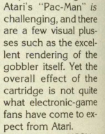 “Unfortunately those who cannot evaluate Pac-Man through lover’s eyes are likely to be disappointed”. and “…is not quite what electronic game fan expect from Atari”.