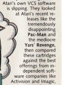 The  E.T. game  book-ended nearly a year of bad news for the Atari VCS,  while rival platforms were faring much better.   Atari VCS games had gone from being “innovative” in the pages of Arcade Alley, to being the butt of funny jokes in the pages of the industry press.