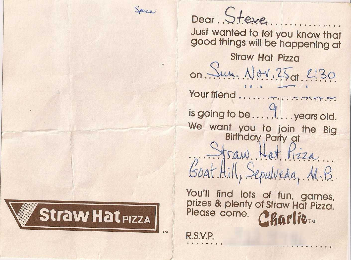 1979 Birthday invitation. Because everyone had a birthday party there.