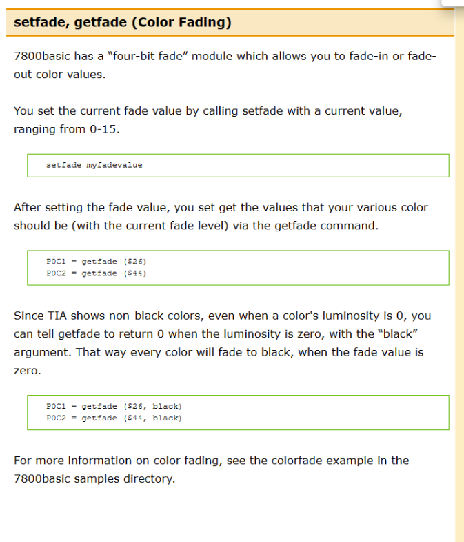 For instance, while writing this I discovered these palette fading commands I’ve never seen before. These would have saved me a lot of work on my last project.