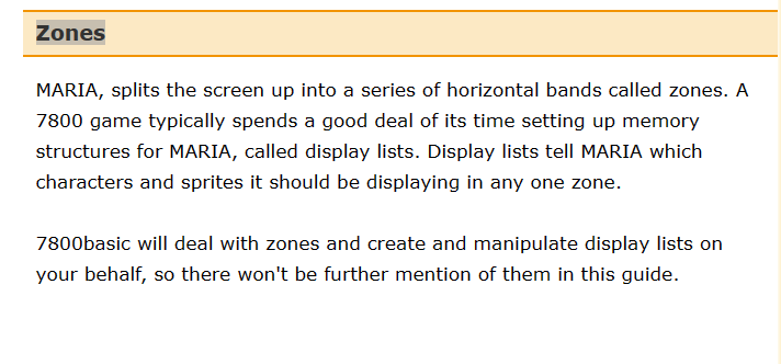 Atari 7800 Basic abstracts the programmer from having to deal with the zones.