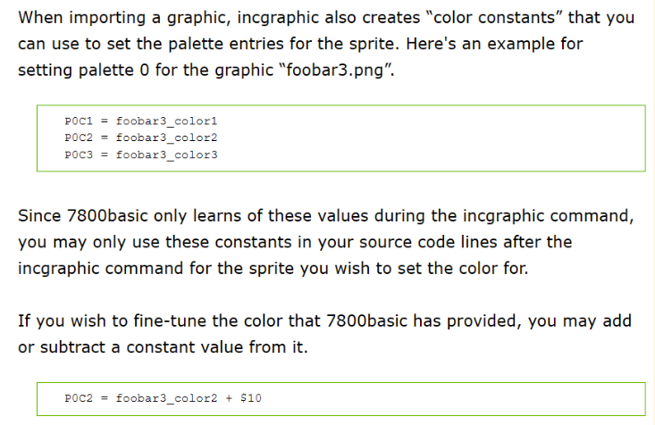 By the way, Atari 7800 Basic has some recent functionality that allows the programmer to extract color values directly from the loaded .PNG sprites. And putting them into color constants: