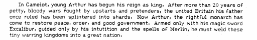 Back in 1984, I found Excalibur to be a sweeping epic. I poured dozens of hours of into it, trying to find its secrets. I fought battles, made policies, tapped Merlin for help, and watched the interpersonal relationships of Camelot play out around the round table. It’s still one of my top-ten Atari 8-bit games, and one of the few Atari 800 games I ever played that truly delivered the true promise of what a computer game could be.